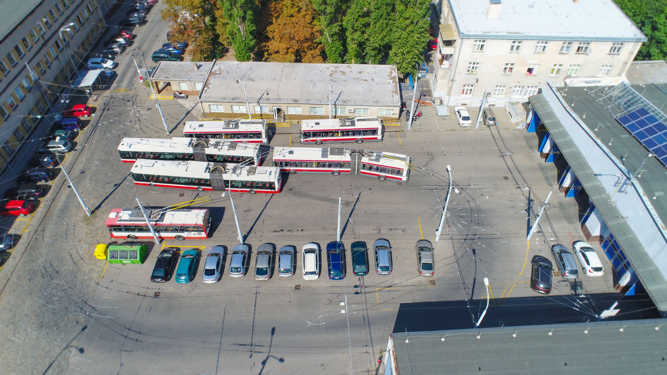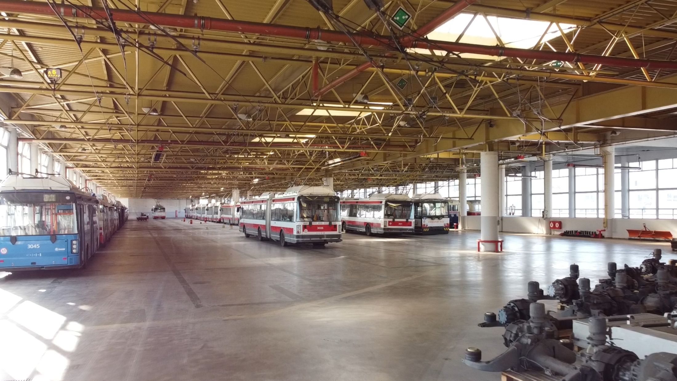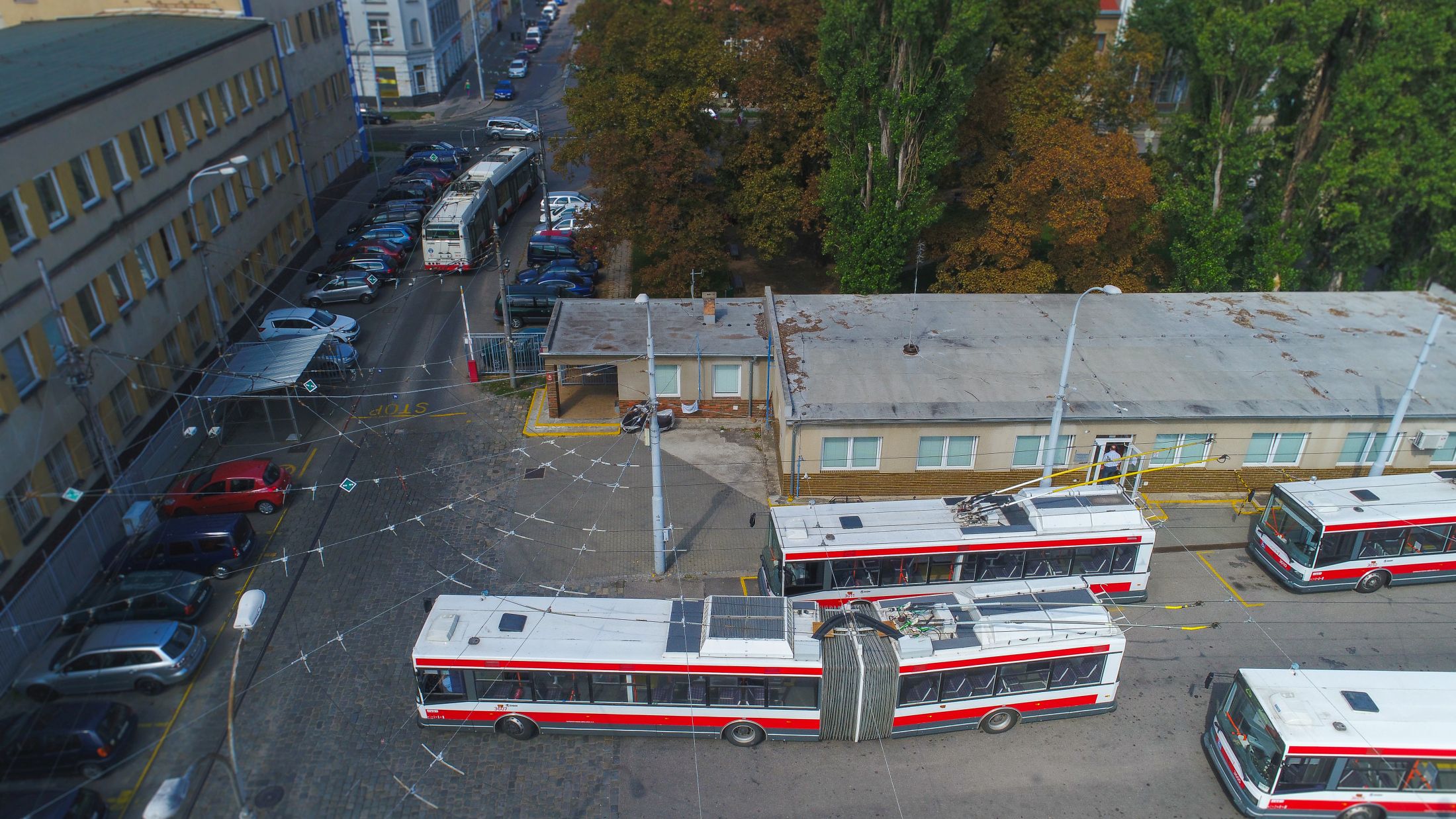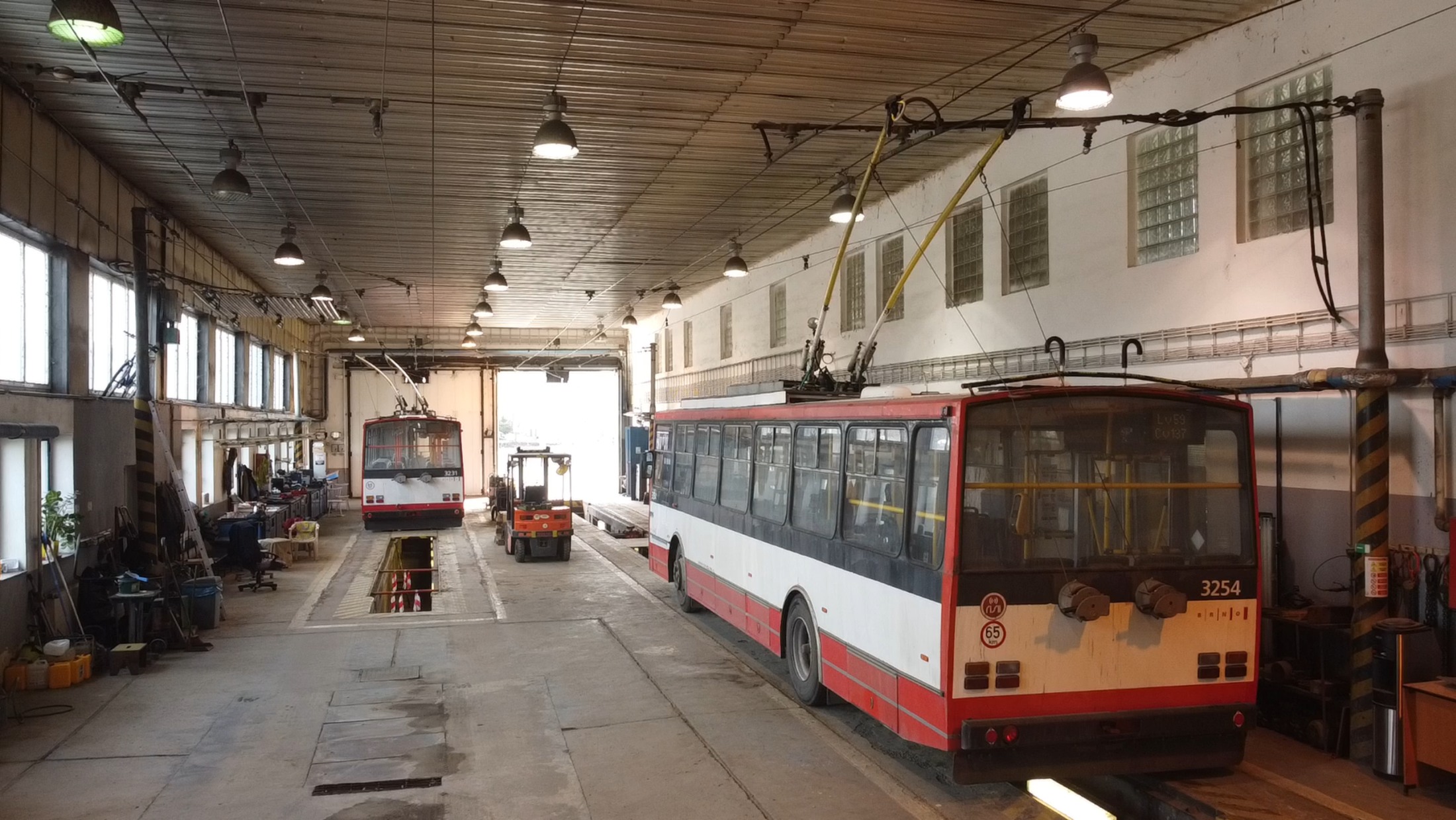 Dnes tu kromě odstavné plochy a haly pro trolejbusy najdete i menší dílny, kde se vozidla opravují a udržují v perfektní kondici. Součástí areálu je také mycí linka a zázemí pro techniků trolejového vedení – známé „dráteníky“. Ti se starají o bezchybný provoz trolejí po celém Brně. Pracují s montážními vozy vybavenými vysokozdvižnými plošinami a jejich práce je neviditelná, ale naprosto zásadní pro každodenní plynulý provoz.