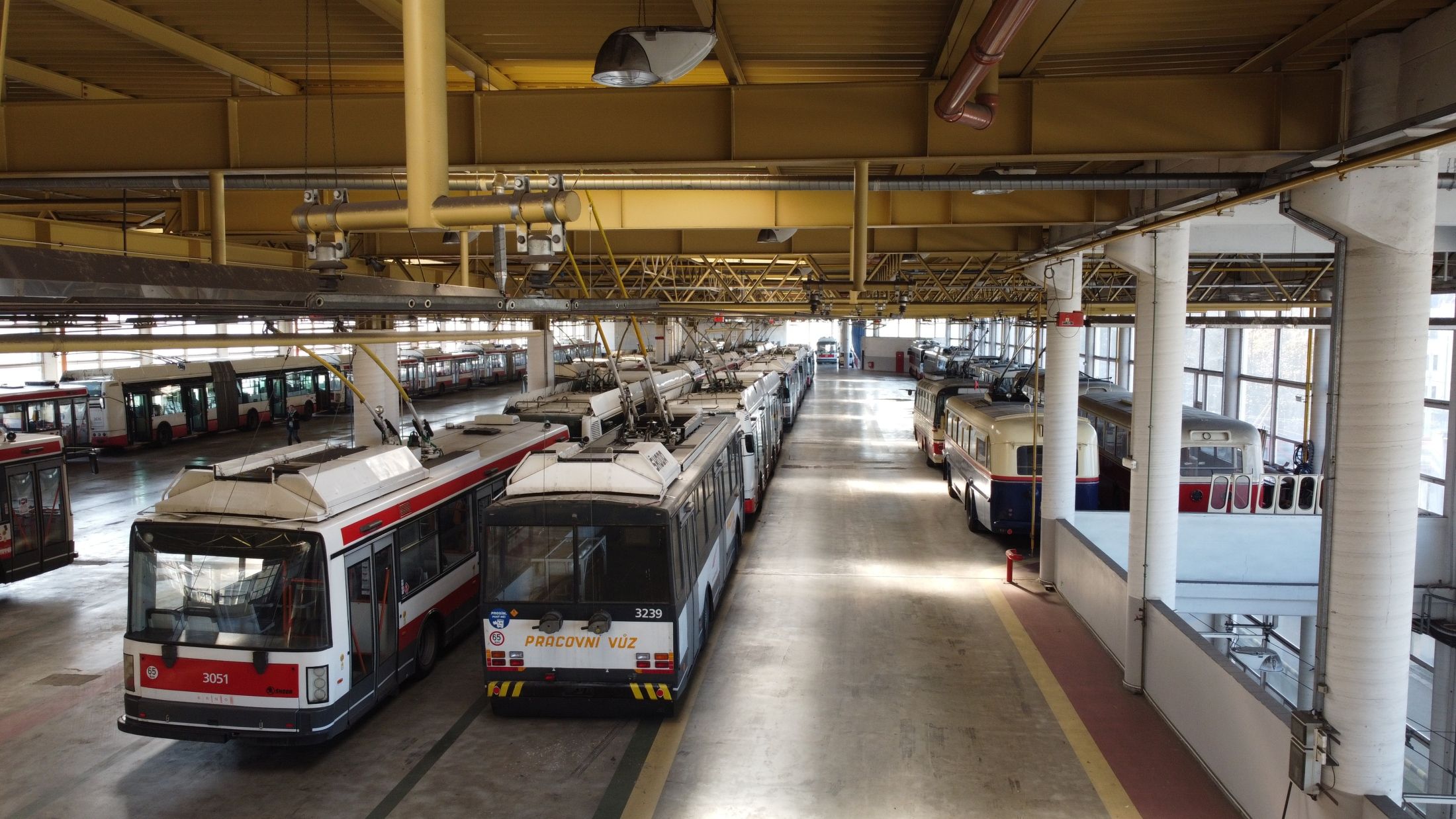 Areál působí komorněji než ostatní vozovny, ale má nezaměnitelnou atmosféru. Původní cihlové budovy z 20. let minulého století tu stojí v kontrastu s moderní technikou a vytvářejí jedinečné prostředí, kde se historie potkává s budoucností – stejně jako samotné trolejbusy, které spojují elektřinu, přesnost a tichý pohyb městem.